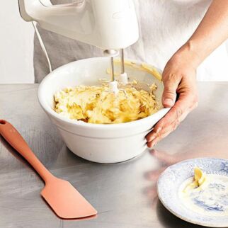 Mit den Quirlen des Handrührgeräts ca. 5 Min. cremig rühren.