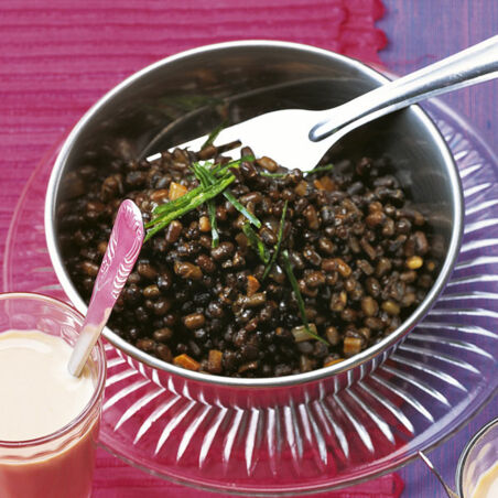 Die Linsen mehrmals in kaltem Wasser waschen. Mit der dreifachen Menge Wasser, Salz und Kurkuma bei mittlerer Hitze 15 Min. kochen lassen. Den Topf vom Herd nehmen und die Linsen zugedeckt noch 5 Min. ziehen lassen.