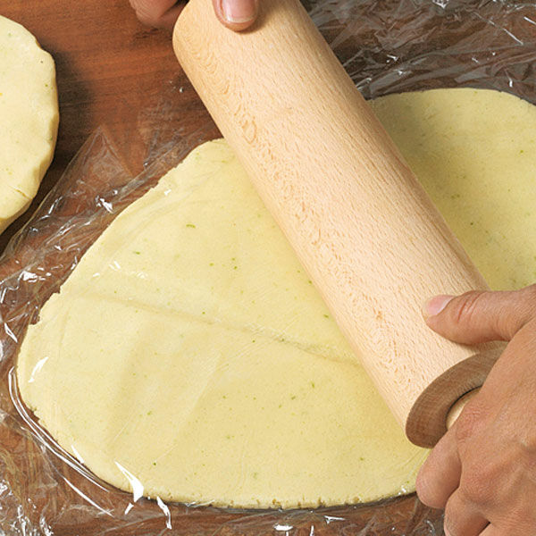 Mehl und Puderzucker in eine große Schüssel sieben. In die Mitte eine Vertiefung drücken. Die Kokosbutter, Limettenschale, Salz und Ei hineingeben. Alles zu einem festen Teig verkneten. Den Teig zu einer Kugel formen, in Frischhaltefolie wickeln und 1 Std. kühl stellen.