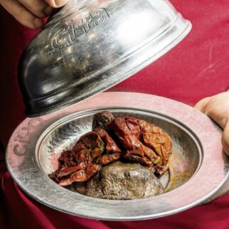 Die Chilischote längs halbieren, entkernen, waschen und sehr fein hacken. Die Nüsse im Mörser zu einer Paste zerstoßen oder mit einem scharfen Messer sehr fein hacken.