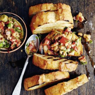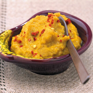 Die Auberginen garen zuerst im Backofen; aus dem Fruchtfleisch entseht dann dieses aromatische Püree, das mit Knoblauch, Sesampaste und Petersilie abgeschmeckt wird.