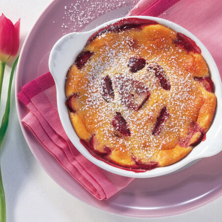 Die Quark-Mascarpone-Mischung auf den Erdbeeren in der Form verteilen. Im heißen Backofen (Mitte, Umluft 180°) in ca. 15 Min. hellbraun backen.