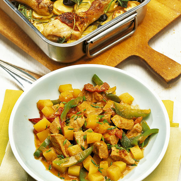 Schweinefleisch, Kartoffeln und Gemüse schmoren zu einem deftigen, ungarischen Gulsch zusammen.