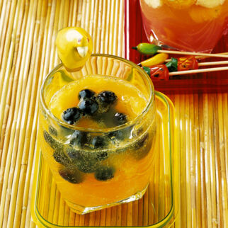 Vor dem Servieren mit dem gut gekühlten Sekt aufgießen.