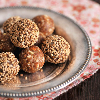 Die übrigen 4 Datteln grob hacken und zusammen mit den Cashewnusskernen unter das Dattelpüree mischen. Mit angefeuchteten Händen zwölf kleine Kugeln aus der Masse formen. Die Kugeln halten sich mehrere Wochen im Kühlschrank.