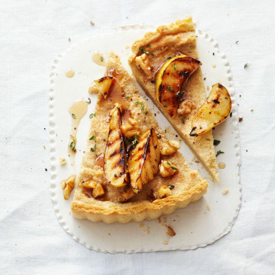 Der Nusskäse gibt der Tarte die Cremigkeit, die gegrillten Birnen das gewisse Etwas. Die Tarte ist so einfach und dennoch raffiniert!