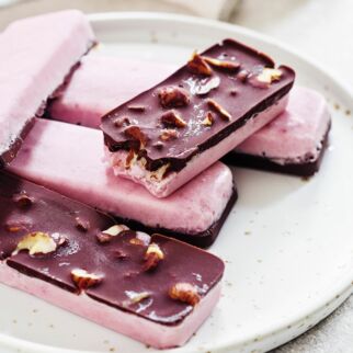Jeweils 1/2 TL Erdbeermasse in den erstarrten Schokoladenförmchen verteilen und mit der restlichen Schokolade bedecken. Die Pralinen mit rosa Pfefferbeeren garnieren und weitere 15-20 Min. im Kühlschrank fest werden lassen. Kühl lagern.