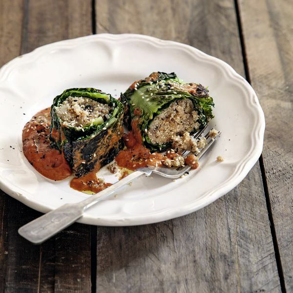 Vegane Wirsingrolle mit Tomaten-Tahin-Sauce