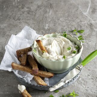 Veganer Mandelkäse im Gewürzmantel