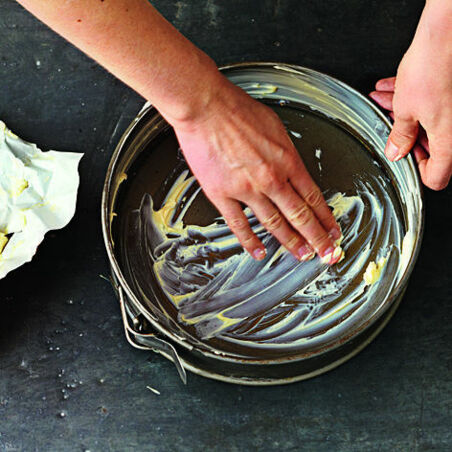 Die Springform mit möglichst zimmerwarmer veganer Margarine gut einfetten. Den Backofen auf 200° vorheizen.