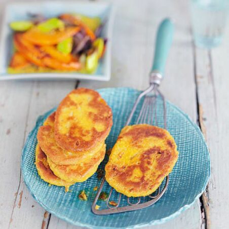 Gebratener Kürbis macht die veganen Kichererbsenbratlinge zum Renner im Herbst. Mit Senfcreme wird es ein rundum sättigendes Vergnügen.