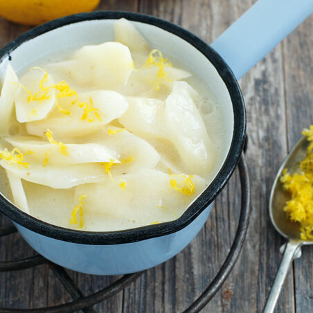 Die Schwarzwurzelstücke in die Sauce geben, mit Salz, 4 EL Zitronensaft, Zitronenschale, Agavendicksaft und etwas weißem Pfeffer abschmecken und weitere 5 Min. bei kleinster Hitze ziehen lassen. Die Schwarzwurzeln sollten danach weich, aber noch immer bissfest sein.