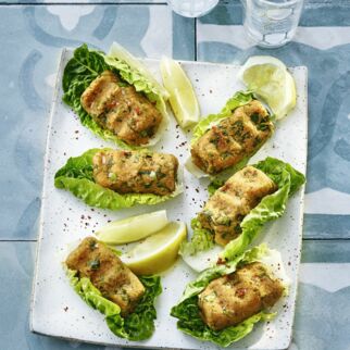 Den Knoblauch schälen und fein hacken. Die Frühlingszwiebeln putzen, waschen und ebenfalls hacken. Die Tomaten waschen und ohne Stielansätze fein würfeln. Die Kräuter waschen und trocken schütteln, die Blättchen abzupfen und hacken. Alles zusammen mit der angeschwitzten Zwiebel-Tomaten-Mischung unter den gequollenen Bulgur rühren. 2 EL Zitronensaft, 2 EL Granatapfelsirup, Tomaten- und Paprikamark sowie die Gewürze zufügen und die Mischung so lange durchkneten, bis eine formbare Masse entstanden ist. Jeweils 1-2 EL davon in der Hand zu einem länglichen Kloß zusammendrücken, der durch die Finger Rillen bekommt.