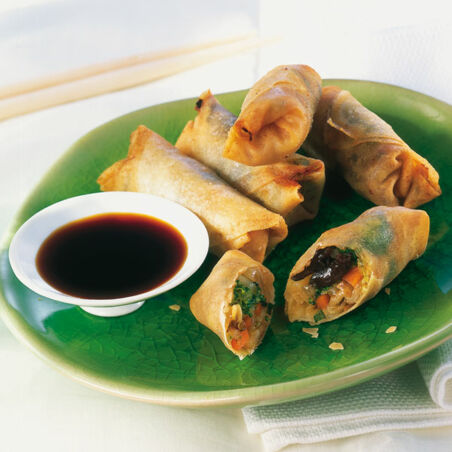 Würzige Gemüsefüllung in feinem Knusperteig - die Rollen schmecken super als vegetarische Vorspeise eines Asia-Menüs.