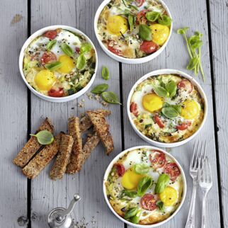 Einen Portionierring auf einen Teller setzen, das Veggie-Tatar hineingeben und leicht andrücken. Den Ring entfernen und das Tatar mit dem restlichen Dill garnieren. Die Backkartoffeln neben dem Veggie-Tatar anrichten.