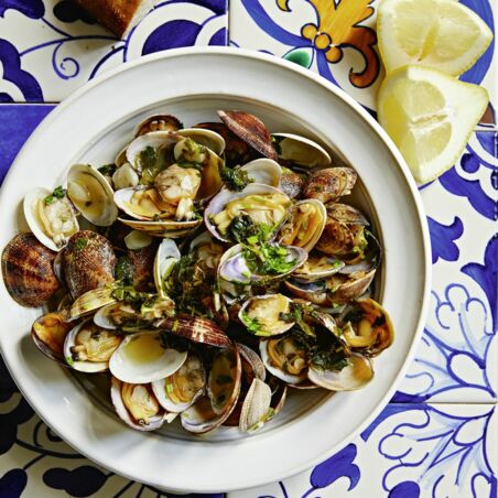 Das restliche Koriandergrün in den heißen Muschelsud geben, umrühren und diesen offen bei mittlerer Hitze ca. 5 Min. köcheln lassen. Währenddessen noch geschlossene Muscheln aussortieren und wegwerfen. Die Zitrone heiß waschen, abtrocknen und vierteln. Heißen Sud über die Muscheln gießen und diese zusammen mit den Zitronenvierteln servieren. Dazu passt frisches Weißbrot, um den Sud aufzutunken.