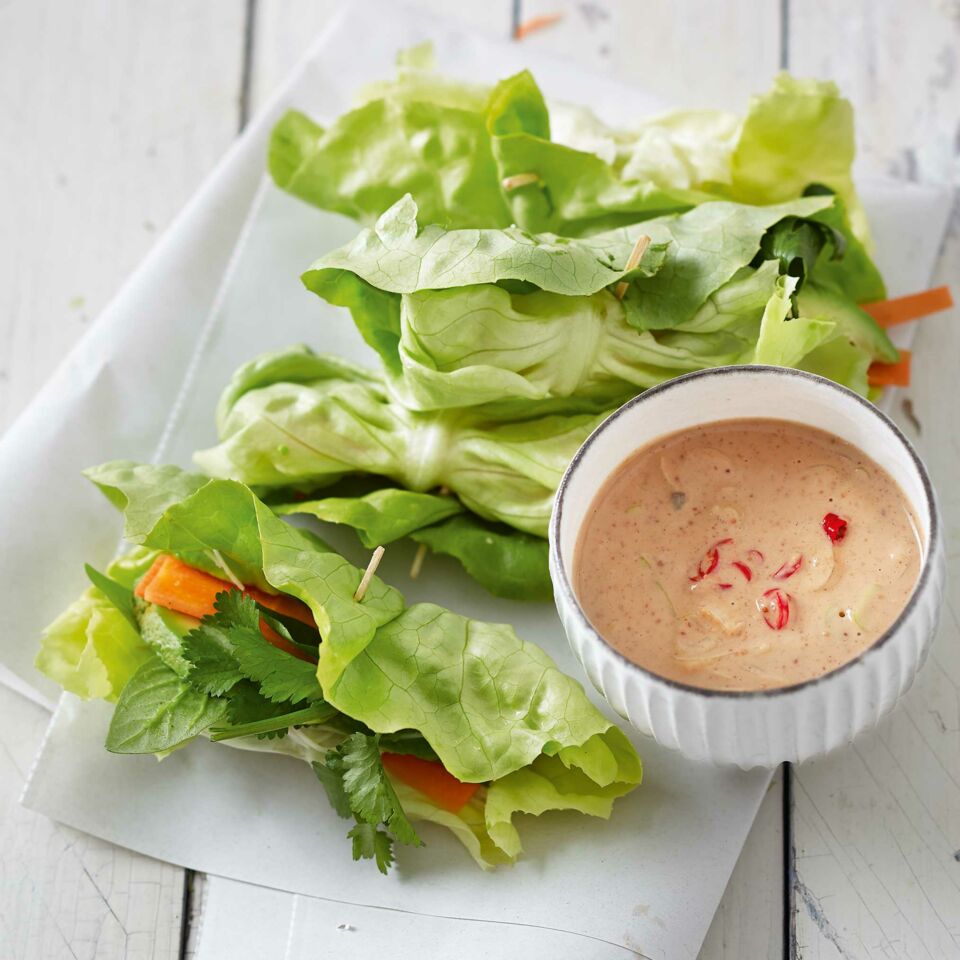 Vietnamesische Salatröllchen mit scharfer Erdnusssauce