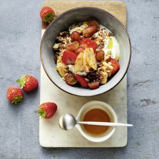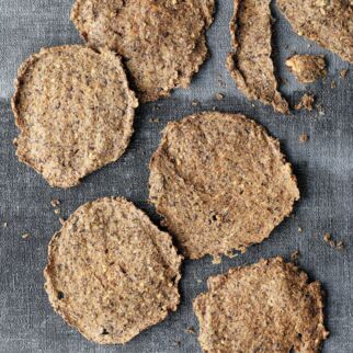Die Leinsamen zusammen mit der Hälfte der Walnusskerne im Blitzhacker fein hacken. Apfelringe und Rosinen hacken. Den Leisamen-Walnuss-Mix, die Apfelringe und die Rosinen mit Apfelmus verrühren und mind. 2 Std. quellen lassen.