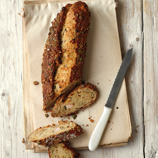 Servieren Sie dieses außergewöhnliche Brot warm, dann knuspert die Kruste noch schön.