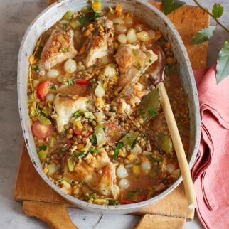 Nicht nur optisch verleihen Kapernäpfel diesem Gericht den letzten Kick. Am besten serviert man das Kaninchen im Topf und reicht frisches Weißbrot dazu.