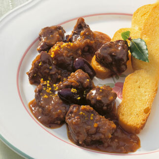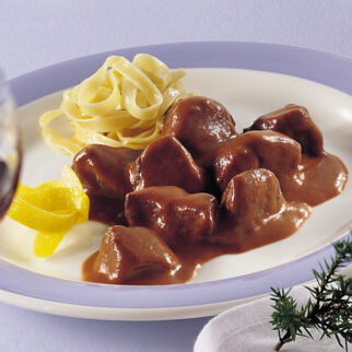 Wildgulasch mit Kaffee-Pflaumen