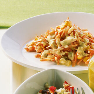 Zur extrawürzigen Winterrohkost passt als Vorspeise Feldsalat, als Hauptspeise Schweinebraten oder gegrillte Entenkeulen.