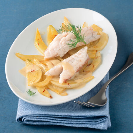 Zu diesem Edelfisch mit aromatischer Anissauce servieren Sie leuchtend gelben Safranfenchel - ein Genuss für Auge und Gaumen.