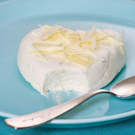 Dann die kleinen Förmchen direkt auf Teller stürzen und die Mullbinde vorsichtig abziehen. Hat man die Quarkmousse im großen Sieb zubereitet, so stürzt man dieses auf ein Holzbrett und sticht dann mit einem Esslöffel von der Mousse individuelle Nocken ab. Nach Gusto mit frischen Früchten und Schokoraspeln servieren.