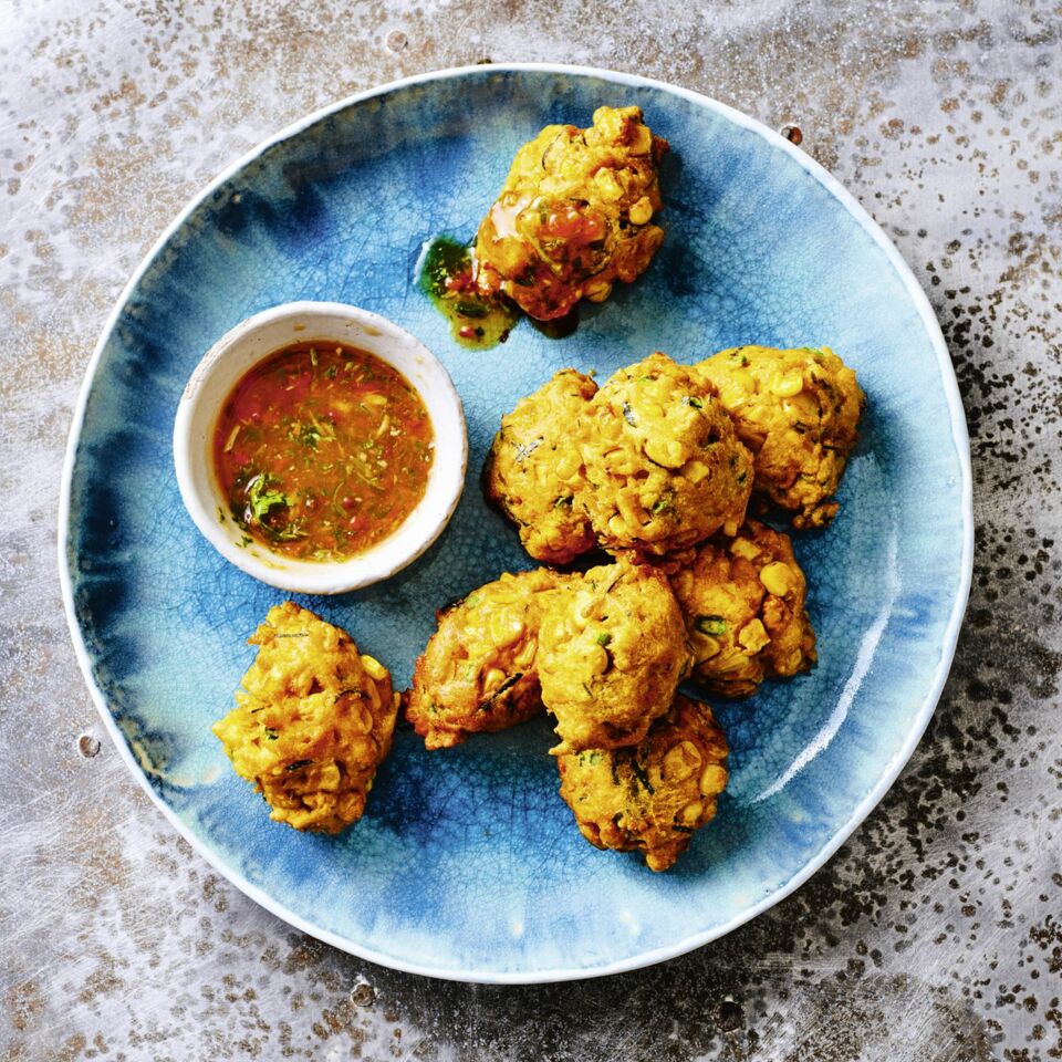 Vegetarische Appetizer: Limettenblätter und Currypaste geben den würzigen Mini-Kuchen das typische Thai-Aroma.