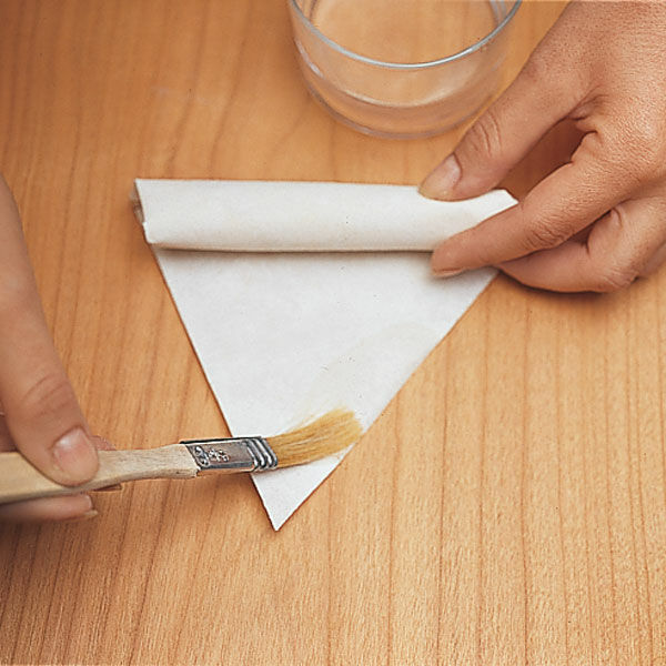Die Teigblätter auf einer Arbeitsfläche ausbreiten und übereinander legen. Mit einem scharfen Messer oder der Küchenschere in Viertel schneiden. Jedes Viertel so wie Tortenstücke in drei gleich große Dreiecke schneiden. Die Dreiecke zu zwei Stapeln aufeinander legen.