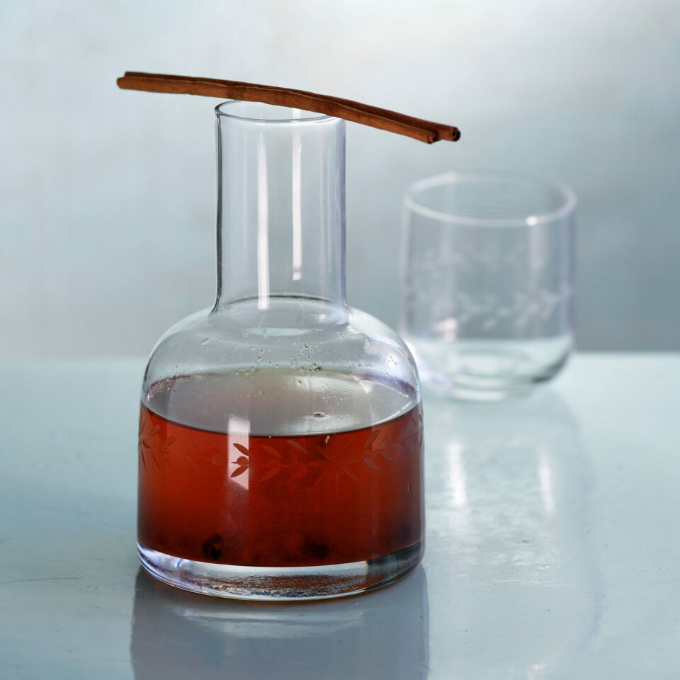 Den Kandiszucker in eine große Flasche füllen. Zimtstangen, Zimtpulver und Gewürznelken zufügen. Wodka aufgießen.