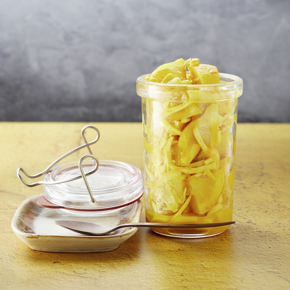 Pickels dürfen in Indien zu keiner Mahlzeit fehlen. Besonders beliebt sind dabei Zitronen-Ingwer-Pickles. Sie werden entweder in anderen Rezepten verarbeitet oder pur als Beilage gegessen und man kann sie ganz einfach selbst herstellen.