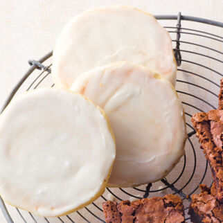 1 Hälfte der restlichen Zitrone auspressen. Aus Puderzucker, restlichem Joghurt und 2 TL Zitronensaft einen dickflüssigen Guss anrühren. Muffins damit bestreichen, mit der restlichen Zitronenschale garnieren.