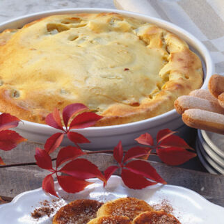 Die Eiweiße mit Salz steif schlagen. Sahne ebenfalls steif schlagen. Beides auf die Quarkcreme geben, mit Mehl bestäuben. Mit dem Schneebesen locker untermischen und in die Form füllen. Im Ofen (Mitte, Umluft 180°) 30 Min. backen.