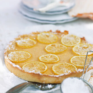 Die fertige Zitronentarte aus dem Ofen holen und 10 Min. in der Form ruhen lassen. Dann den Formrand lösen und die Tarte auf einem Kuchengitter auskühlen lassen.