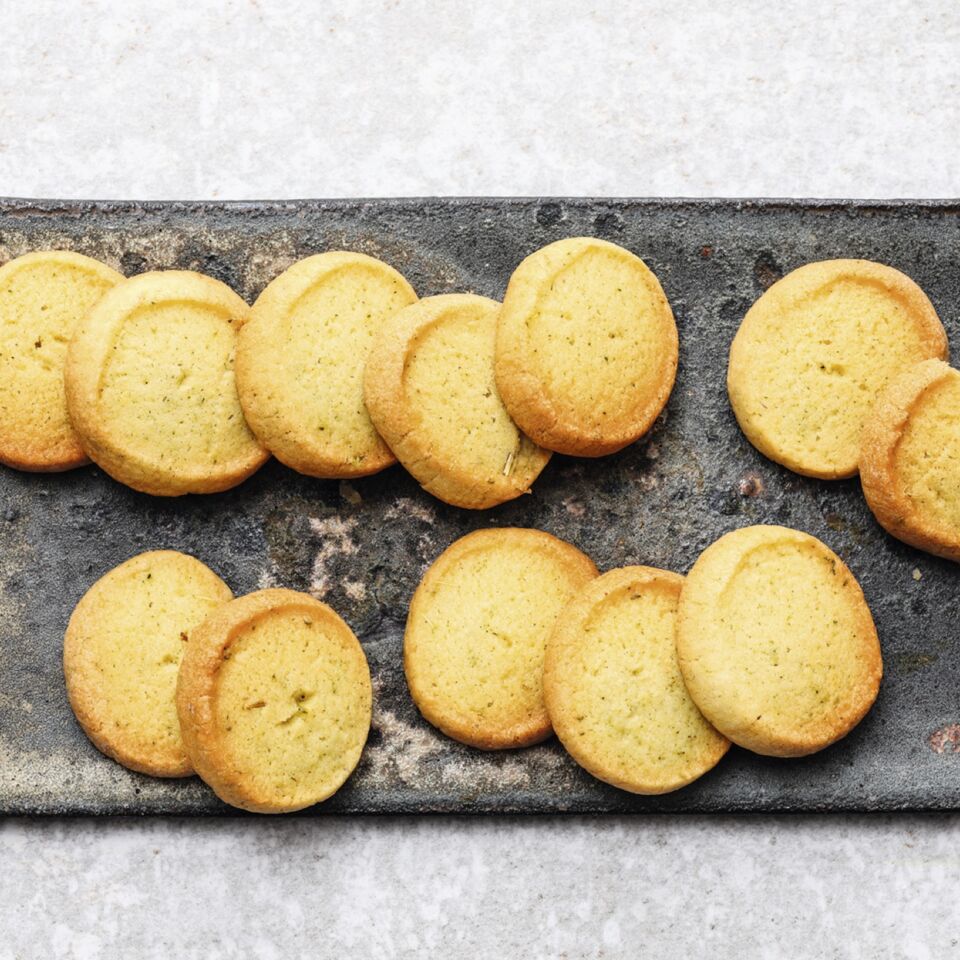 Den Backofen auf 180° vorheizen, zwei Backbleche mit Backpapier belegen. Die Teigrollen auf einem Schneidebrett in 1 cm dicke Scheiben schneiden. Die Taler auf die Backbleche setzen und nacheinander im Ofen (Mitte) in je 12-13 Min. goldgelb backen. Herausnehmen und auf einem Kuchengitter auskühlen lassen.