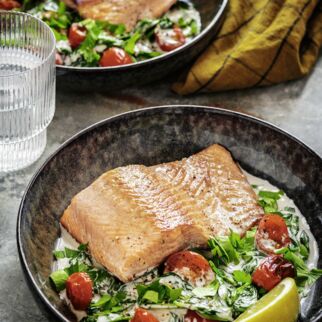 Wenn das Fleisch gar ist, die Tomaten dazugeben und alles gut mischen. Die Zoodles in die Pfanne geben und 2-3 Min. mitkochen. Die Kokos cuisine dazugeben, die Gemüse-Fleisch-Pfanne mit Salz und Pfeffer abschmecken, auf zwei Tellern anrichten, nach Belieben mit Basilikum garnieren.