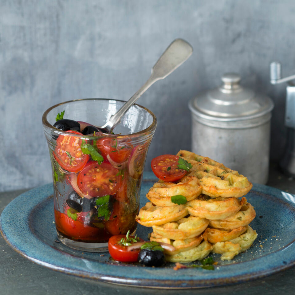 Raffinierte Waffeln mit würzigem Fetakäse griechisch inspiriert.
