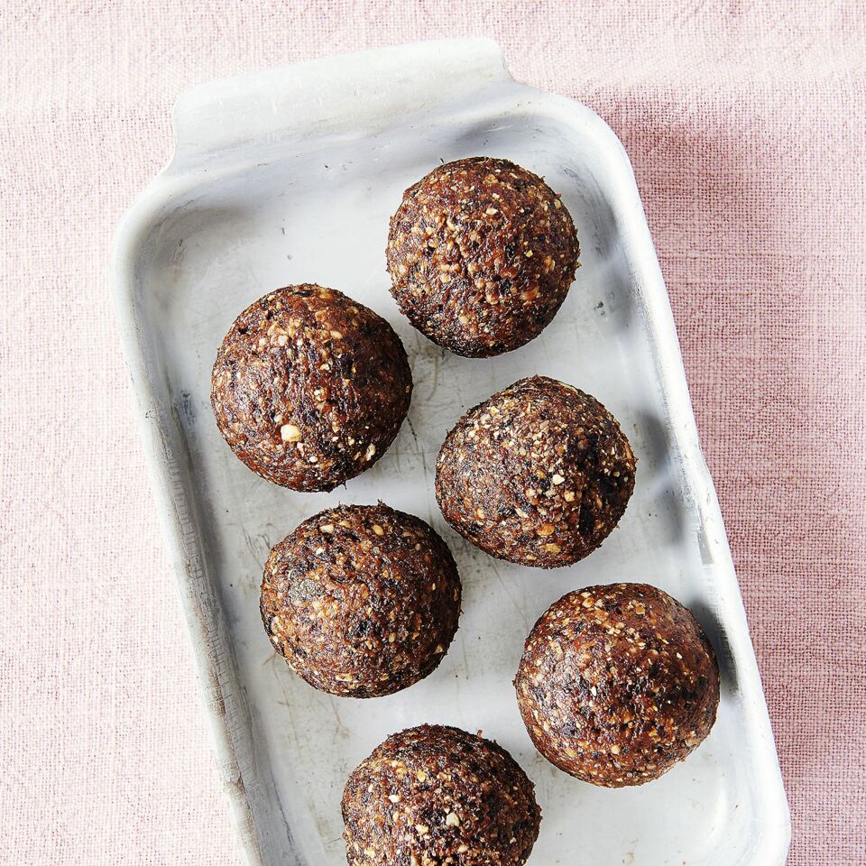 Energienachschub gefällig? Kein Problem: Unsere Energy-Balls mit Pflaumen, Rosinen, Nüssen und Kürbiskernen sind kleine Kraftwunder.