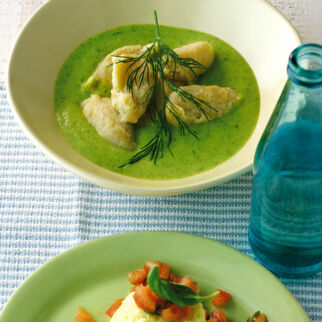 Das Eigelb mit Sahne und Milch verquirlen. In die Sauce rühren und erwärmen. Die Sauce mit Salz, Pfeffer und Curry abschmecken. Die Röllchen mit Kerbel bestreut servieren. Dazu schmeckt Kartoffelpüree.