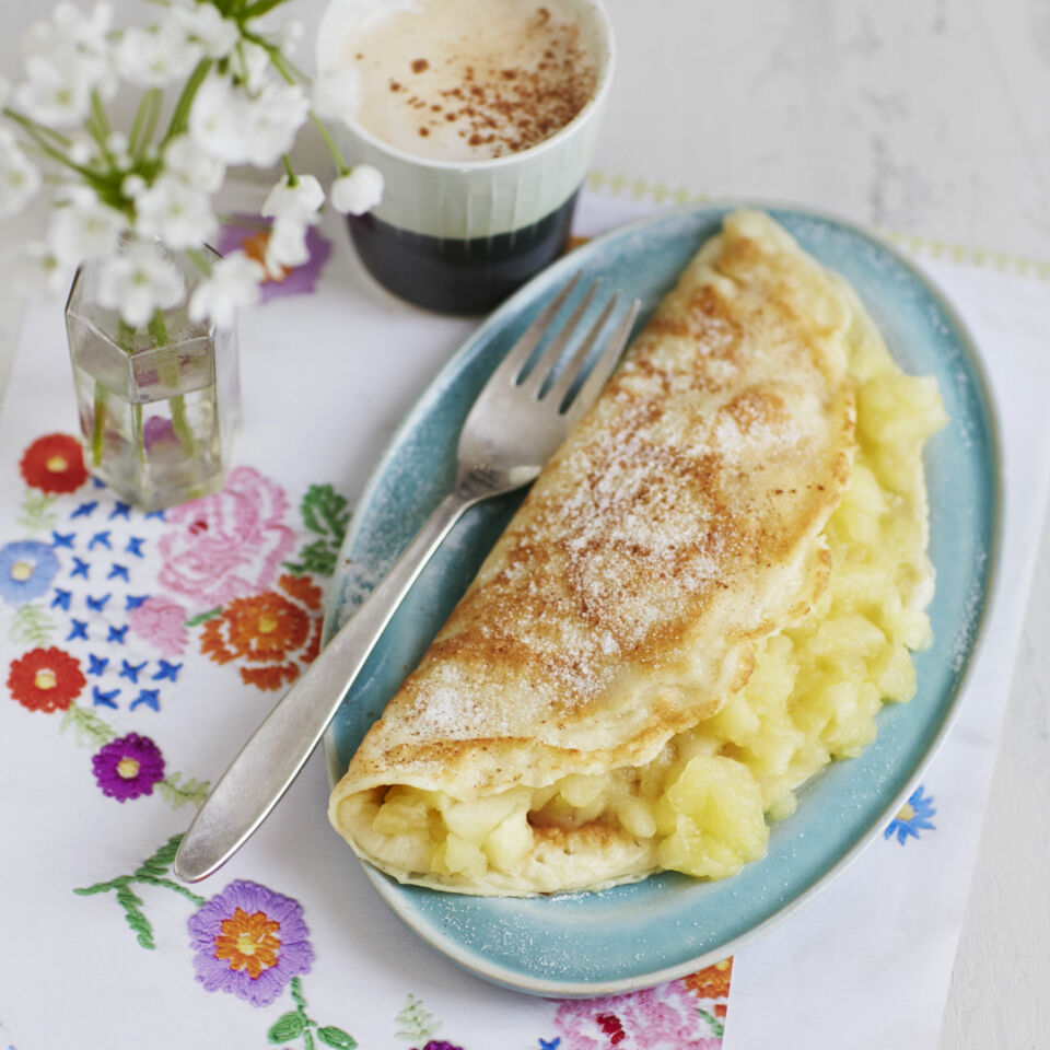 Tipp: Da es ja immer etwas dauert, bis alle Pfannkuchen fertig gebacken sind, stellt man sie am besten bis zum Servieren im Backofen bei 80° warm. Den Backofen dafür nur kurz zuvor vorheizen!