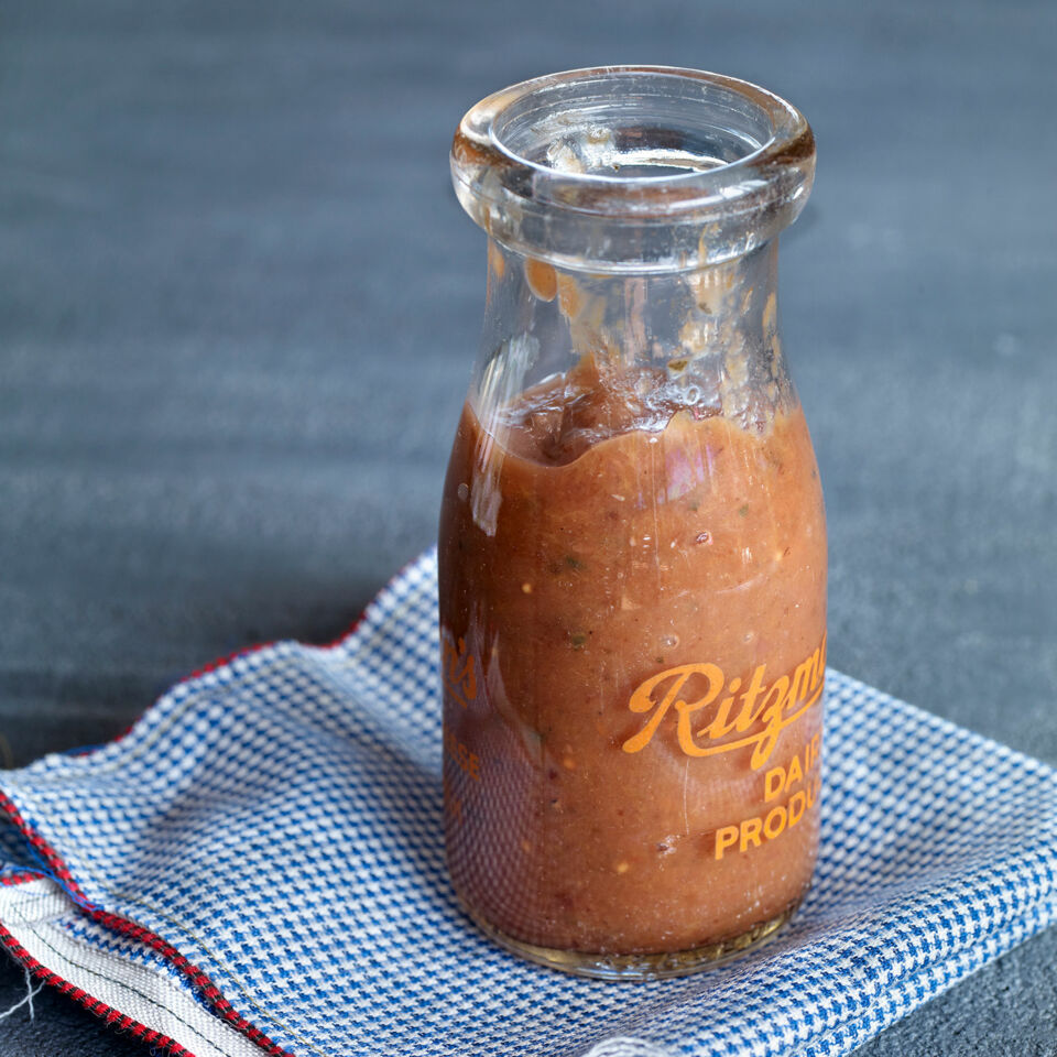 Dieser Ketchup schmeckt zu gebratenem und gegrilltem Fleisch und Geflügel, zu kaltem Braten oder zu geräuchertem Fisch. Außerdem passt er zu Würstchen und Pommes frites.