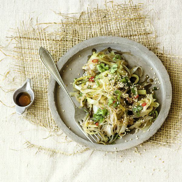 Zwiebeln und Lauch werden mit frischem Koriander, Glasnudeln und aromatischem Sesamöl kombiniert. Ein wahrhaft asiatischer Genuss.