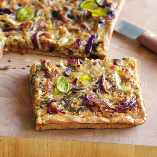 Diese typische Herbstspezialität aus den südlichen Weingegenden Deutschlands zeigt sich hier mit frischen Pfifferlingen und Walnusskernen von seiner edlen Seite.