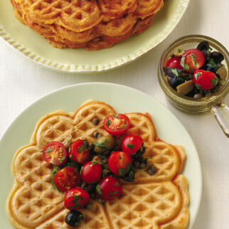 Durch die Röstzwiebeln bekommt dieses Waffelrezept eine besonders würzige Note.