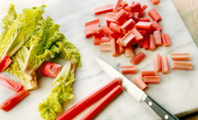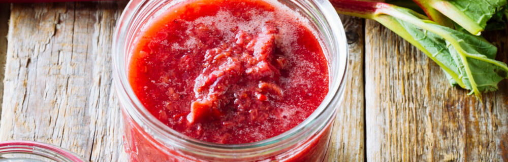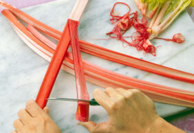 Die langen Rhabarber-Stangen mit dem leicht säuerlichen Geschmack eignen sich hervorragend für Kompott, Kuchen oder ein fruchtiges Chutney. Oder man verkocht zu einer herrlichen Rhabarber-Marmelade mit zum Beispiel Erdbeeren.