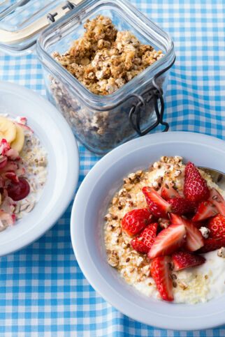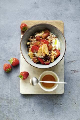 Erdbeeren gehören im Sommer nicht nur auf den Kuchen oder in den Salat, nein, auch zum Frühstück können wir die roten Beeren schon genießen. Am besten passen sie zu Bowls, Müslis oder Porridges.