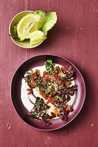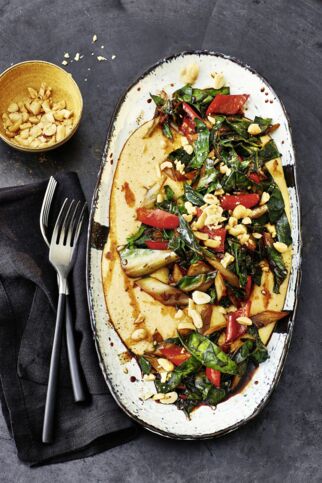 Erdnusspolenta mit Mangold