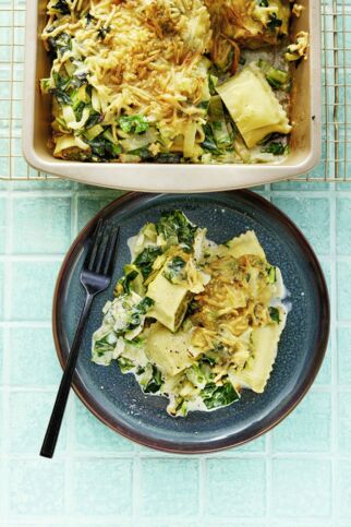 Maultaschenauflauf mit Mangold