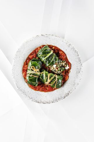 Mangoldpäckchen in Tomatensauce